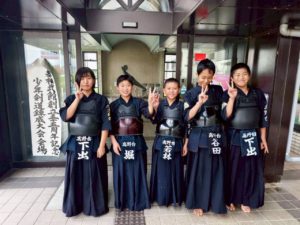 当会からは、先鋒4年、次鋒6年、中堅6年、副将中学2年、大将中学2年のオーダーで、小学生と中学生の混合となります。