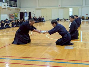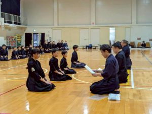 昇級審査に合格した剣士達と、10月に行われました審査会にて五段に昇段されました兵頭さんへ証書、記念品が授与されました。