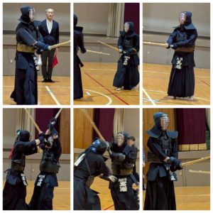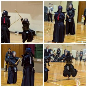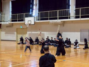 初心者組が演武を披露した後、小学低学年の部、小学高学年の部、中学生の部、一般の部で分かれて試合です。